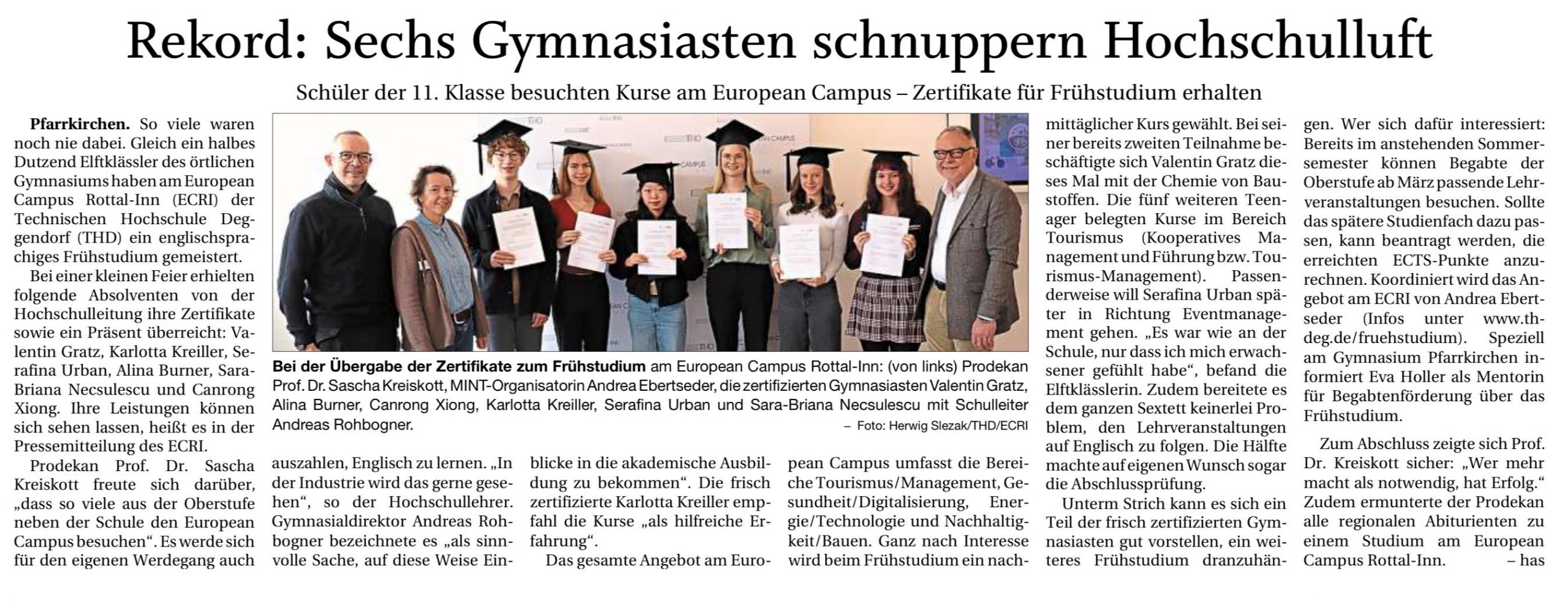Rekord: Sechs Gymnasiasten schnuppern Hochschulluft
