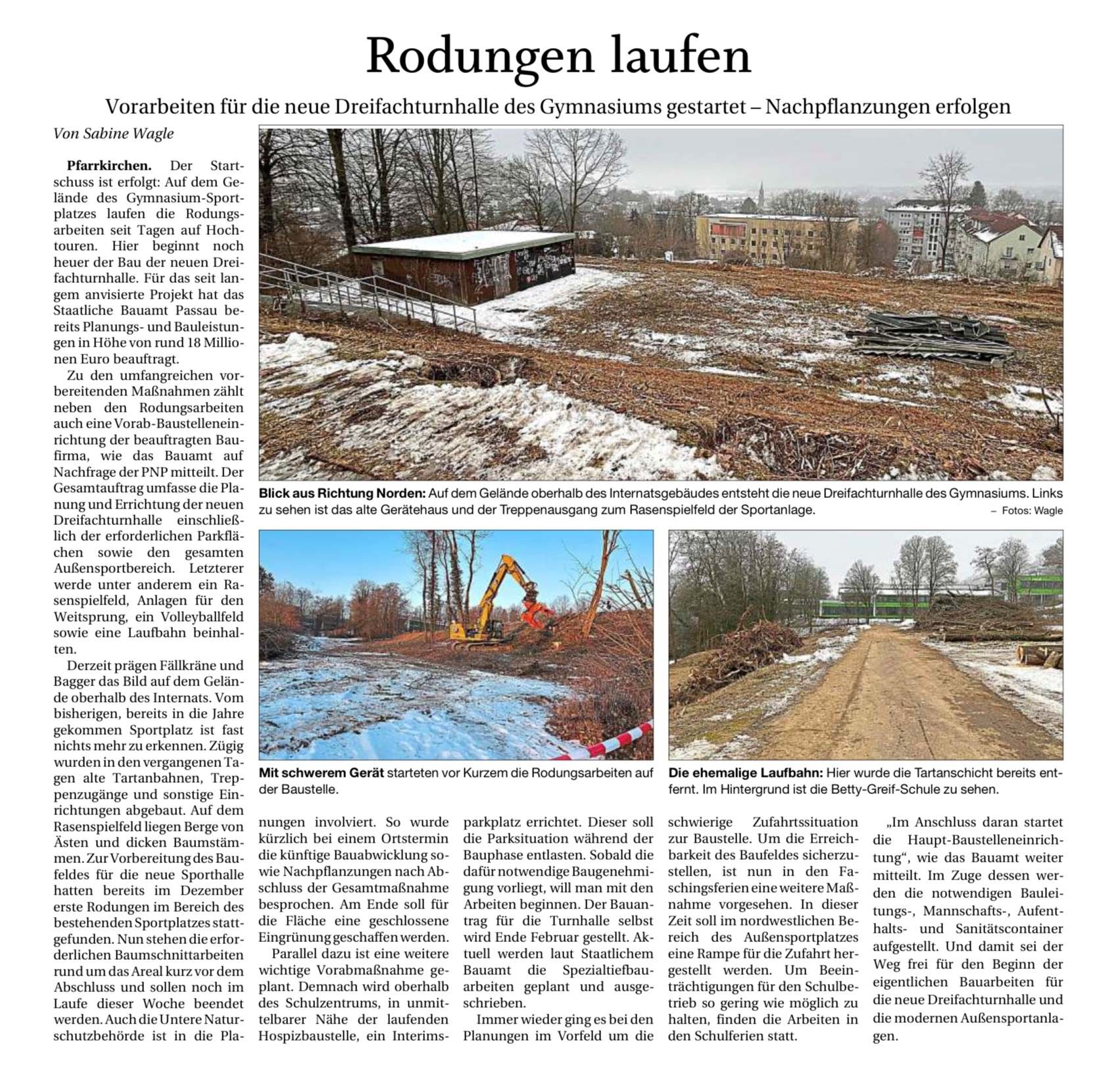 Rodungen für die neue Turnhalle laufen